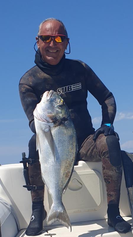 A Memorable Catch: The Dream Gilt-head Bream It was one of those days that start quietly but end up leaving unforgettable emotions. Together with my friend Sergio, we returned to a well-known spot that had already given us some good surprises in the past. The conditions were far from ideal: murky water, low visibility, strong lateral current, and a bottom temperature of around 16°C. But our desire to dive outweighed it all. After a few scouting dives, we dropped to about 26 meters, following familiar lines along the seabed. The current made it hard to hold position, but right in that controlled chaos, I spotted a massive shadow moving slowly near a slab of rock. It was her. A huge gilt-head bream — one you never forget. I approached slowly and steadily, holding my breath and slowing my heartbeat. The moment was perfect: a clean, precise shot, and the bream stayed down, heavy and imposing. The ascent was a mix of effort and adrenaline, with Sergio already understanding from above that it was something special. A catch memorable not just for the weight and beauty of the fish, but for the tough conditions, the bond between friends, and the reminder that some spots — even familiar ones — always know how to surprise you.