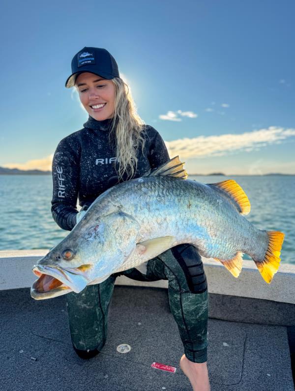 The fish in this area were extremely flighty as the water vis was a hazy 2.5m. Slight movements were making them spook. Unfortunately, barramundi are found in crocodile waters, so hunting these fish also means keeping your whits about you. I had to stay on the surface and make really slow movements to land one. As it swam underneath me I stayed dead still, then as it turned to face me I turned slowly lined it up with my speargun. As it flinched to swim away I took the shot and luckily it was a spine shot to reduce the commotion to pull the fish in.