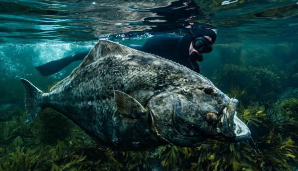 First day diving in 46 degree water after 15 years of planning and anticipation. On our first drift, my 11yr old son Connor and I did two warm up dives in a strong current when my buddy Ole called that there was a big Halibut. I swam over until I saw the fish which I thought was about 120 lbs swimming in the current. I chased him down and wanted to put a shot in his head with the 8' Headhunter Nomad Pole Spear but right when I got down to him just as I was in range he kicked hard and I took a shot hitting him mid body on the lateral line through the spine. I got a second pole spear and when he laid down on the bottom took my time and breathed up and placed a perfect shot just behind the head which mortally wounded him. To be safe, I knifed him in the head then pole speared him again in the head with no slip tip and grabbed him and brought him to the surface by the spear. When I got him in my hands I realized how gigantic he was as I couldn't fit my arms around him. I put a loop of 6' rope around his tail, swam him to the boat and secured him to the cleat myself then it took four of us to pull him in to the boat. When we pulled him in immediately measured him (the legal size slot limit is 80cm-200cm) The measurement was exactly 198cm. A true giant and one of the coolest fish I've had my hands on. Thank you to Axel of Arctic Spearfishing for putting me on the fish of a lifetime, Ole for spotting the monster, and my son Connor for charging hard every day in tough conditions.